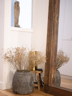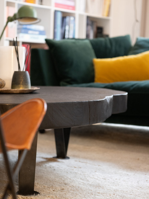 Each piece has its soul and its tones. A palette of natural colors ranging from sand to khaki green through touches of orange and terracotta for an invitation to escape and connection to nature, in this haven of peace 1 hour from Paris. I chose warm shades and traveling objects for a bohemian spirit that takes us on a journey." Camille